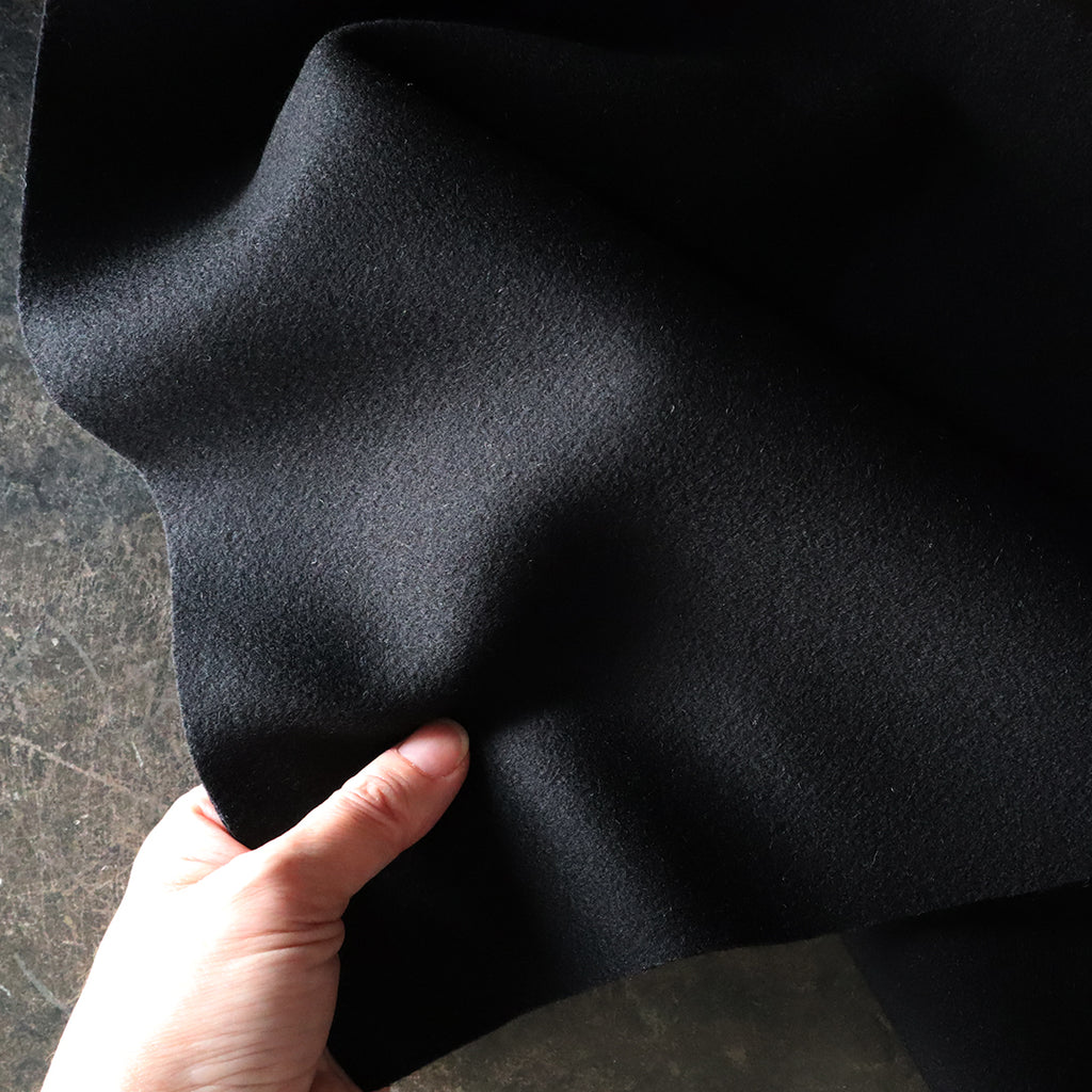 表布には、イタリア・ビエラ地方の FRATELLI BACCI(フラテッリ・バッチ)社 の上質なウールを使用。カシミヤ混ならではのしっとりとした手ざわりと、なめらかな質感が魅力です。
