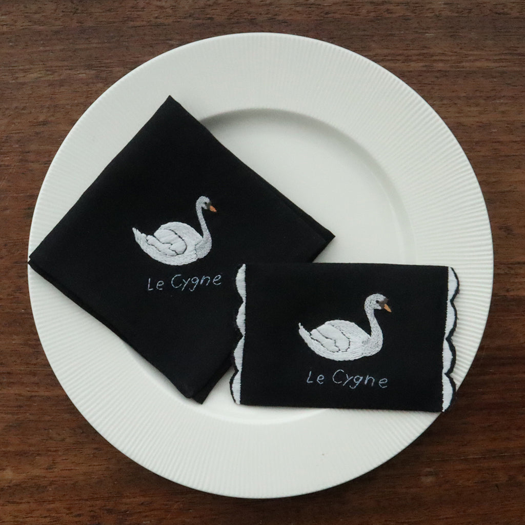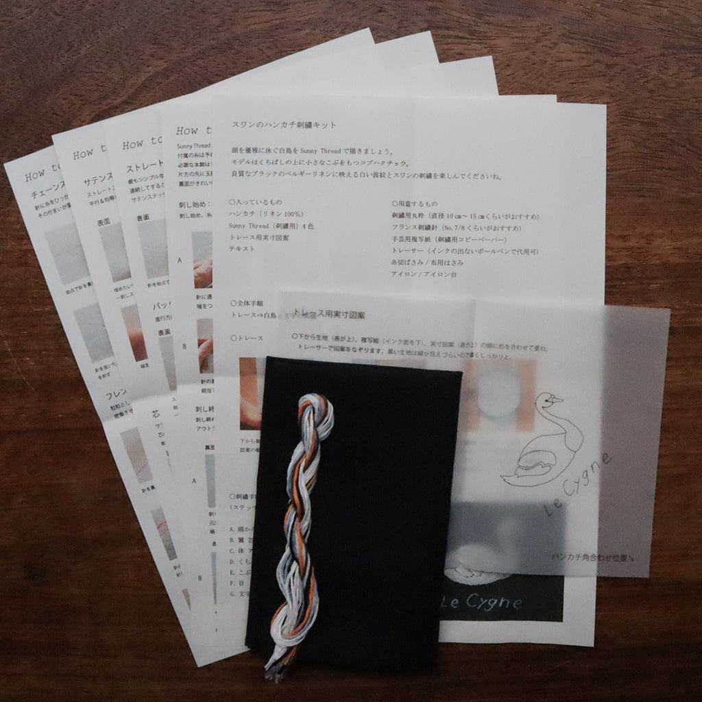湖を優雅に泳ぐ白鳥をSunny Threadで描く刺繍キット。モデルはくちばしの上に小さなこぶをもつコブハクチョウ。ブラックによく映える白い波紋とスワンの刺繍をお楽しみください。