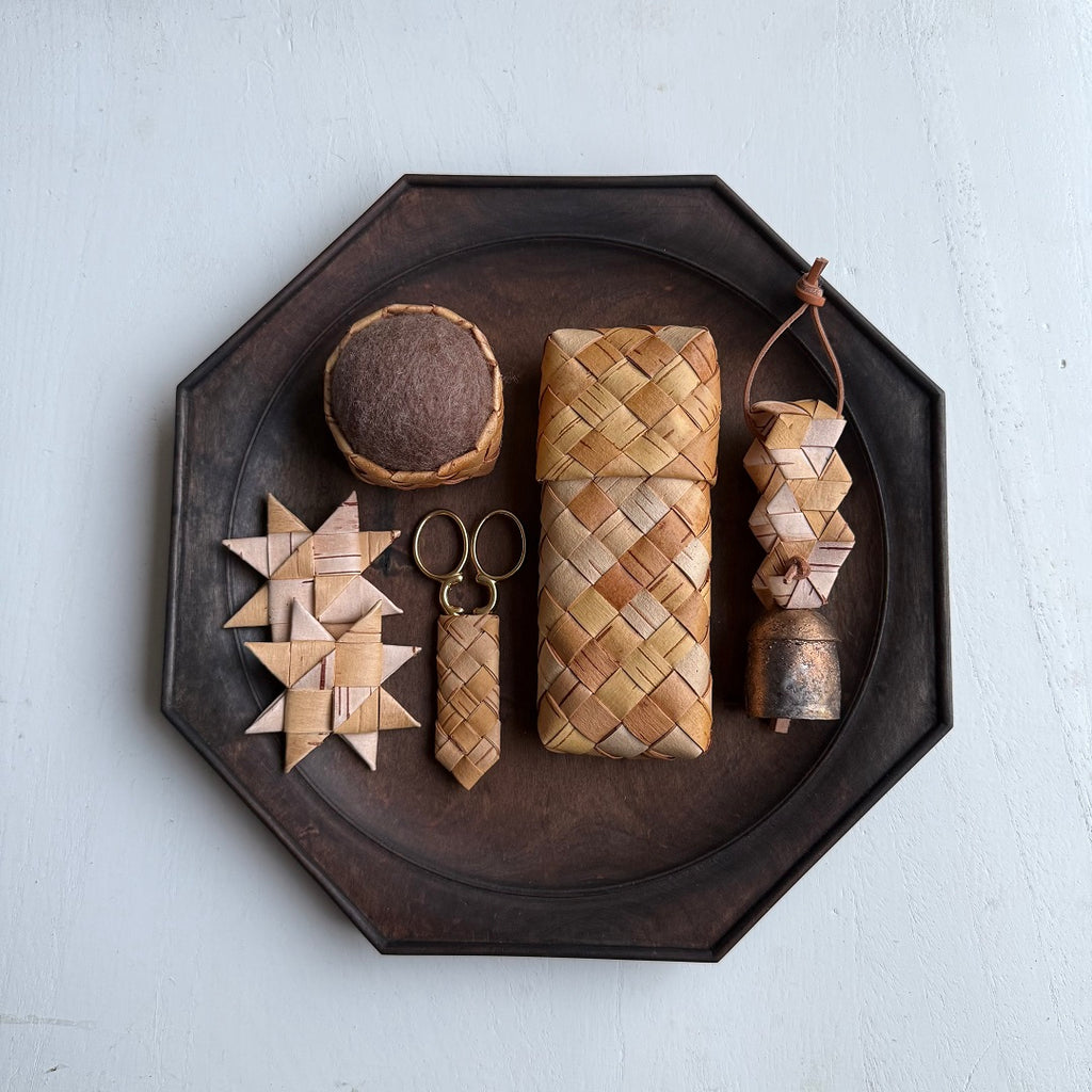 白樺樹皮は水に強く防腐効果があることから、かごやお皿など暮しの道具として使われてきた歴史があり、北ヨーロッパでは災いから身を守るお守りとして身につけていたといわれています。
