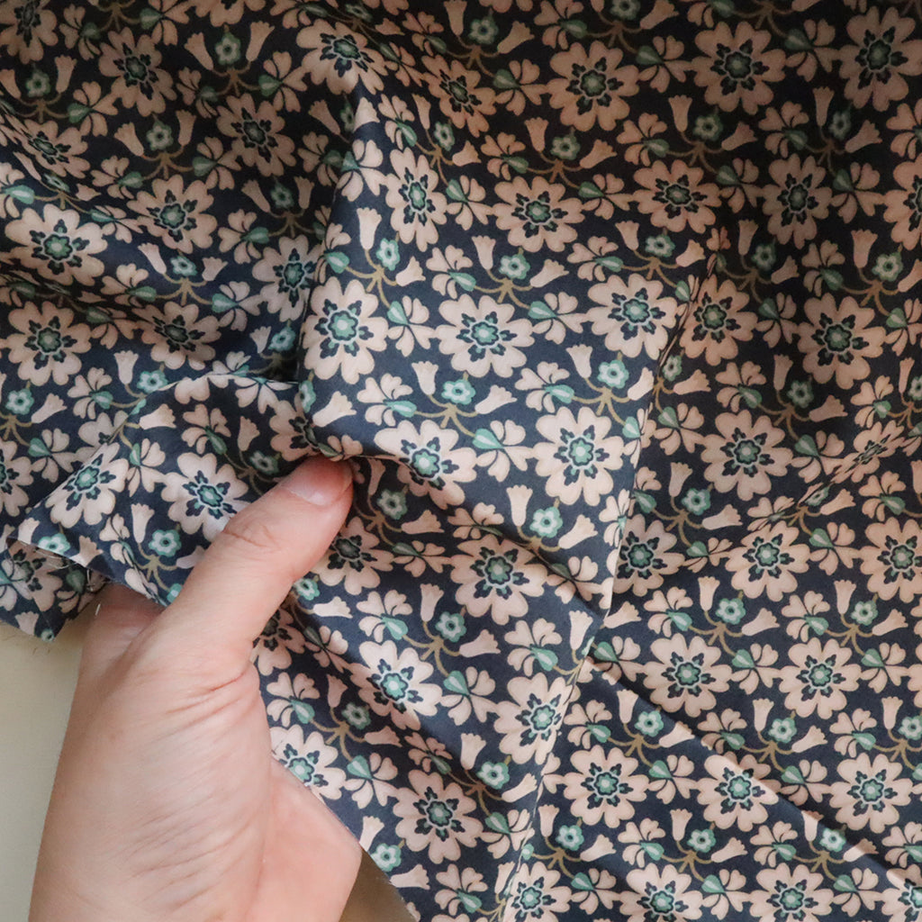 多作なデザイナーであり理論家でもあるクリストファー・ドレッサーの哲学に基づき、リバティのスタジオで手描きされた鏡面仕上げのアール・ヌーヴォー調の花柄です。1862年に出版されたドレッサーの著書『装飾デザインの芸術』に由来する「マクセン」は、シンメトリー、秩序、成長、反復、変化といった自然の基本原理をエレガントに取り入れています。