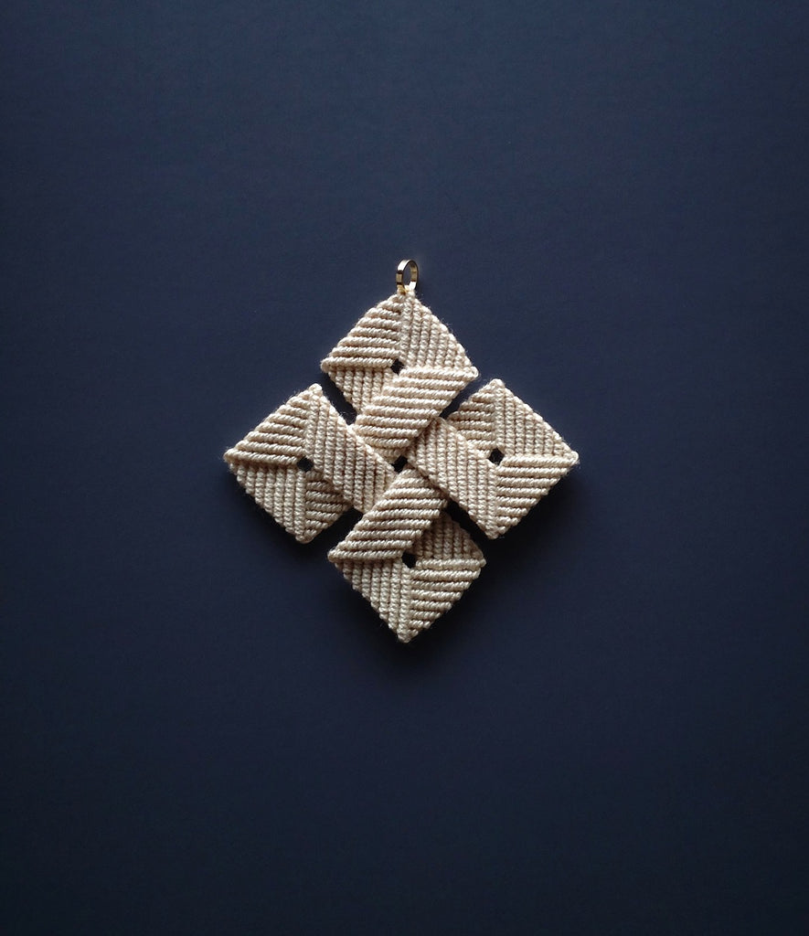 マクラメレースの基本の結びの一つ「巻結び」を使って、